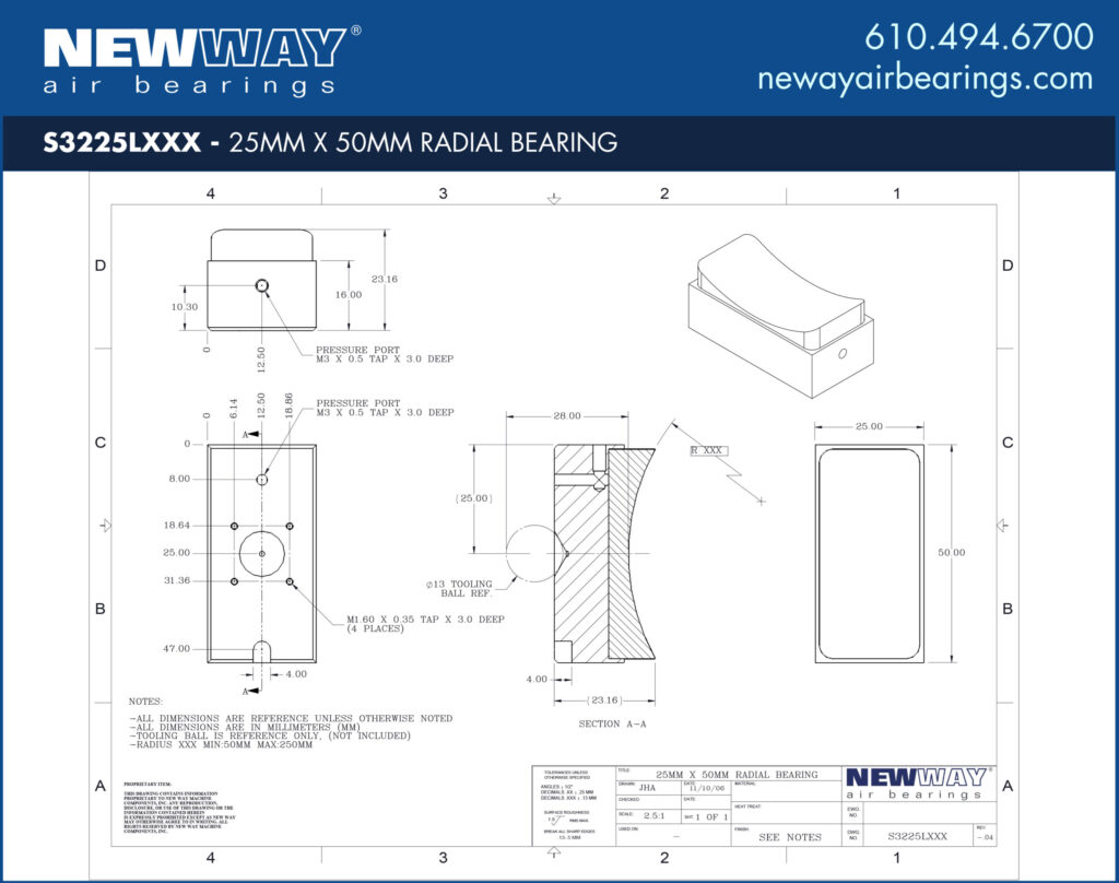 25mm x 50mm Radial Air Bearings Concave L Profile