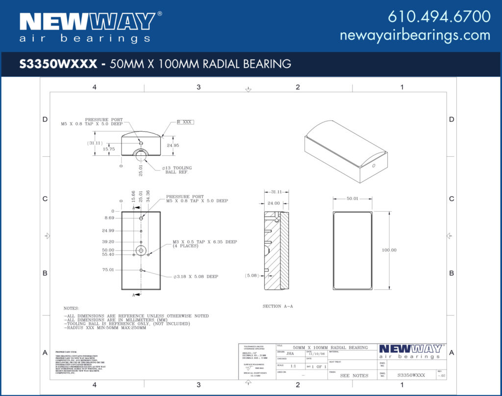 50mm x 100mm Radial Air Bearings Convex W Profile