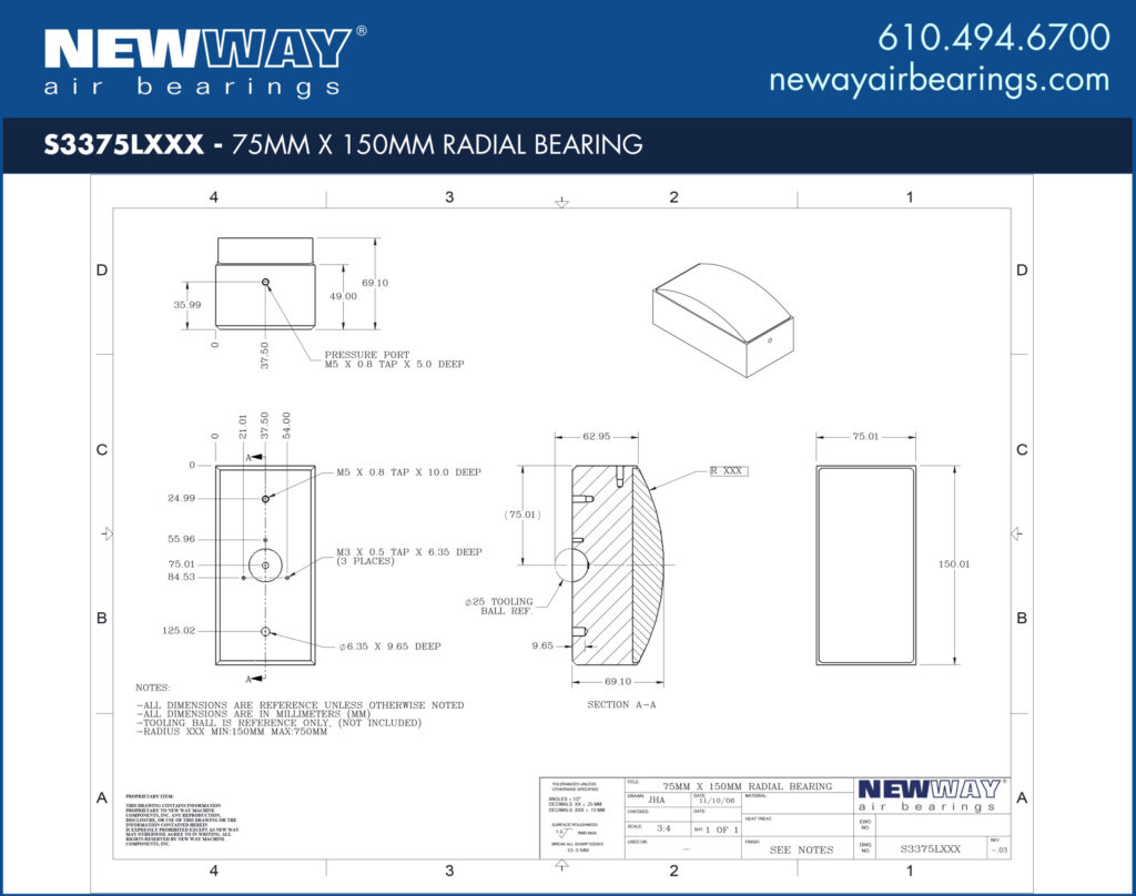 75mm x 150mm Radial Air Bearings Convex L Profile