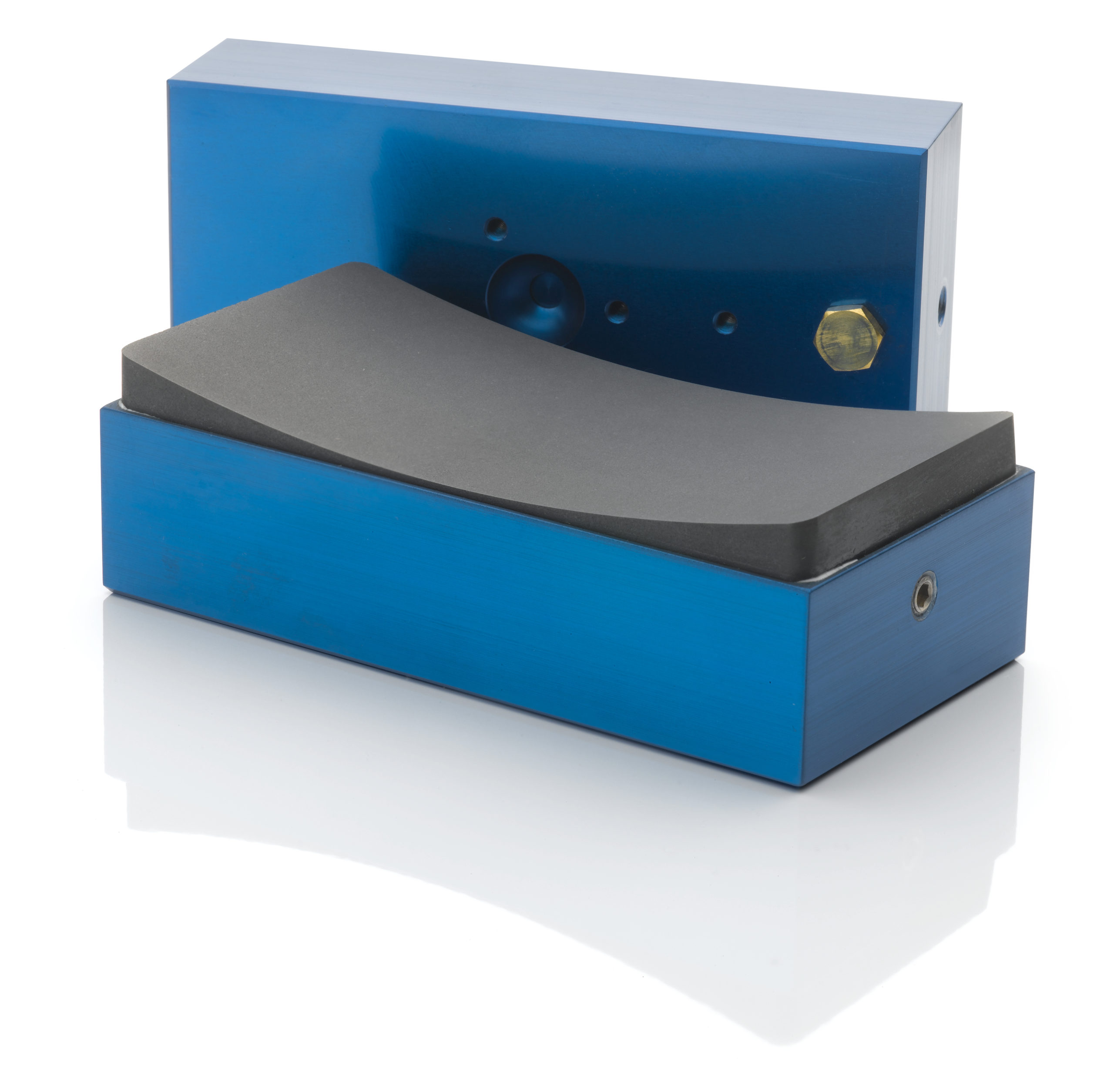 While porous media bearings are a revolutionary product in terms of their performance, the mechanics of their operation is shockingly simple. Our bearings utilize a surface made from porous graphite, which evenly diffuses the air across the bearing face. The torturous passageways the gas must flow through produces a damping effect, resisting rapid changes to the volume of air in the gap, and thus making our bearings highly resistant to bearing collapse.