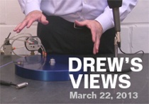 Welcome to the March 22, 2013 edition of Drew’s Views. This is the second video post filmed during independent testing in the Machine Dynamics Lab at Penn State University. This time, Theodore R.S. Deakyne performed the Air Film Dynamics testing under the guidance of Dr. Eric Marsh, Professor of Mechanical Engineering at Penn State, and Director of the Lab. Ted Deakyne and Professor Marsh were, again, kind enough to allow Drew to film the proceedings. To see the video, just click ‘Read More’ and then ‘Play.’