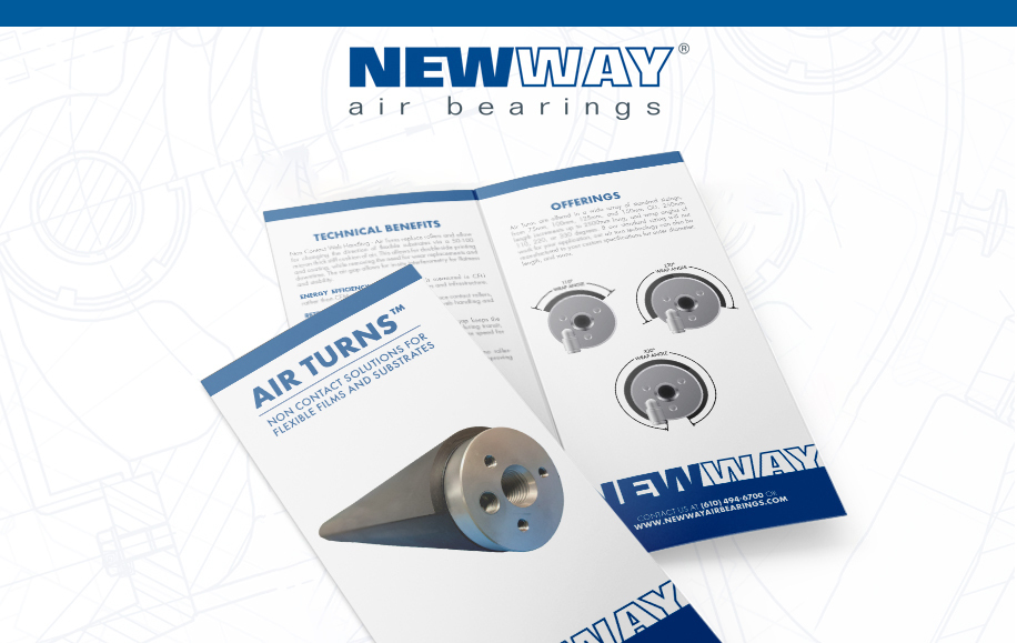 New Way® Air Bearings remains committed to bringing the benefits of Frictionless Motion®️ to new industries. That’s why we’re proud to bring you the 101 on Air Turns, with our new trifold brochure! Air Turns are our revolutionary solution for non-contact handling of roll-to-roll processes.